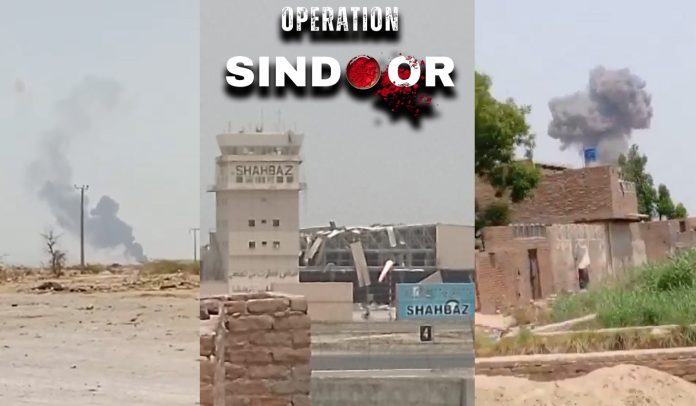 Local footage confirms that the Pakistan Air Force Base Shahbaz in #Jacobabad has been struck. The ATC tower is seen engulfed in smoke, and there is likely damage to the runway as well.#India #Pakistan #OperationSindoor #OperationBunyanulMarsoos https://t.co/Ia2fH0vZP9 pic.twitter.com/jnIEj7XsGu