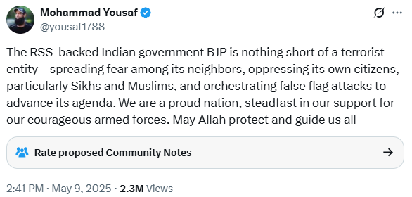 Not only Pakistan’s government and military personnel, but cricketers are also attempting to create chaos among Sikhs in India. Mohammad Yousuf, former Pakistani cricketer and coach of the Pakistani cricket team, wrote on X, “The RSS-backed Indian government BJP is nothing short of a terrorist entity—spreading fear among its neighbours, oppressing its own citizens, particularly Sikhs and Muslims, and orchestrating false flag attacks to advance its agenda. We are a proud nation, steadfast in our support for our courageous armed forces. May Allah protect and guide us all,” specifically claiming that India is oppressing Sikhs and Muslims.” Yousuf was born Christian and converted to Islam in 2005.