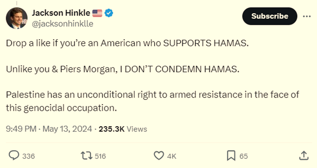 Hinkle had even interviewed Hamas terrorist Basem Naim. He has been called out by the Anti Defamation League (ADL) for his “extensive anti-Zionist, antisemitic and anti-Israel rhetoric since the start of the Israel-Hamas war.”