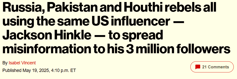The New York Post added, ““In the aftermath of the Pahalgam attack, inauthentic networks used generative AI [bots] to create and circulate provocative memes pushing the false flag narrative, featuring Indian symbols, political figures and inflammatory slogans,” says the NCRI report. Those “inauthentic” bots have been spreading Hinkle’s message to millions of social media users, according to NCRI.””