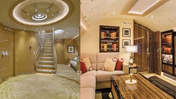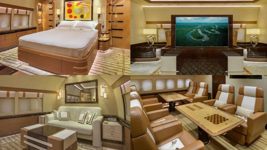 The Boeing 747-8, which is worth $400 million, has all the luxuries that could be fitted in an aircraft. The aircraft has a master bedroom, guest suites, bathrooms, multiple lounges, a private office and kitchens designed by the French firm Alberto Printo Cabinet.