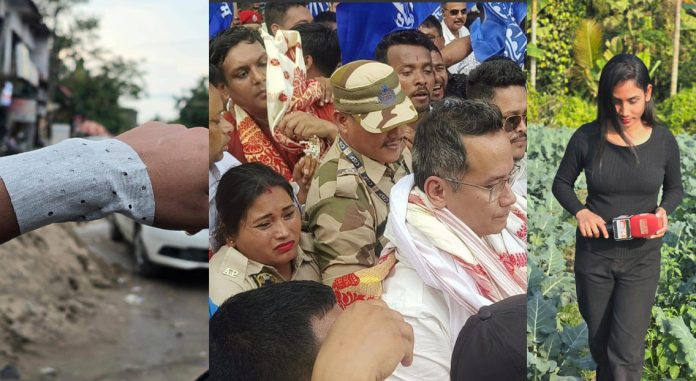 Absolute shameful scenes from Jorhat yesterday as Congress workers, in their frenzy to welcome Gaurav Gogoi, turned the town into a lawless arena. A woman journalist was allegedly manhandled, her clothes torn, and she was left injured by the unruly mob — all for doing her duty.… pic.twitter.com/XjN1PLp8pM