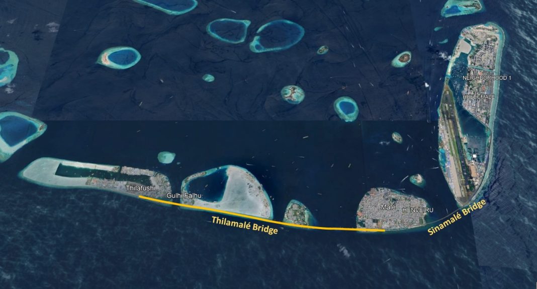 The Malé-Villingili-Gulhifalhu segment is expected to be completed by March 2026, while the Gulhifalhu-Thilafushi link will be completed by September 2026. As Male is already connected with Hulhulé and Hulhumale islands to the east through the China-funded 1.39 km long Sinamalé Bridge, six islands in the region will be connected with bridges.