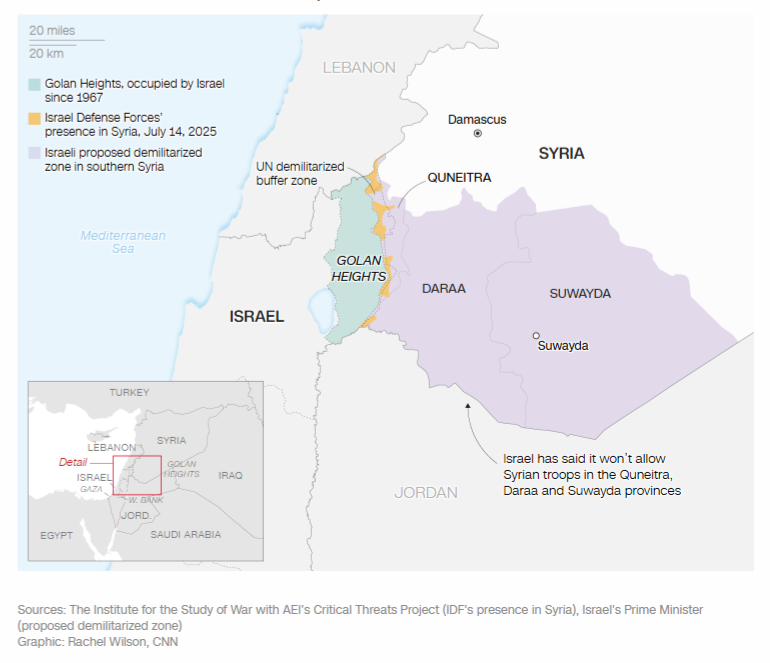In southern Syria, particularly Suwayda, the Druze live close to Israel’s Golan Heights. This area has long served as a buffer between Israel and various jihadist groups operating during the Syrian civil war. For Israel, instability in this Druze-dominated region represents not just a humanitarian crisis but also a strategic nightmare. The possibility of another hostile front opening up—this time with Bedouin, which is unacceptable.