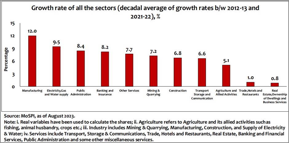 The tenets of ‘Sabka Sath, Sabka Vikas’, that drive GoI’s actions, entails a focus on development of all sectors. No better example of same than Assam, where sectors spanning from Agriculture and Manufacturing, to Real estate and Banking, have shown impressive growth over last decade.