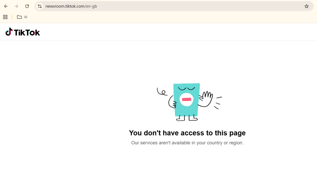 The homepage of the TikTok website is visible to some users in India, but no further access is available. When the ‘Newsroom’ link on the website is clicked, a message appears, which reads, “You don’t have access to this page” and “Our services are not available in your country or region”.