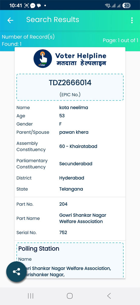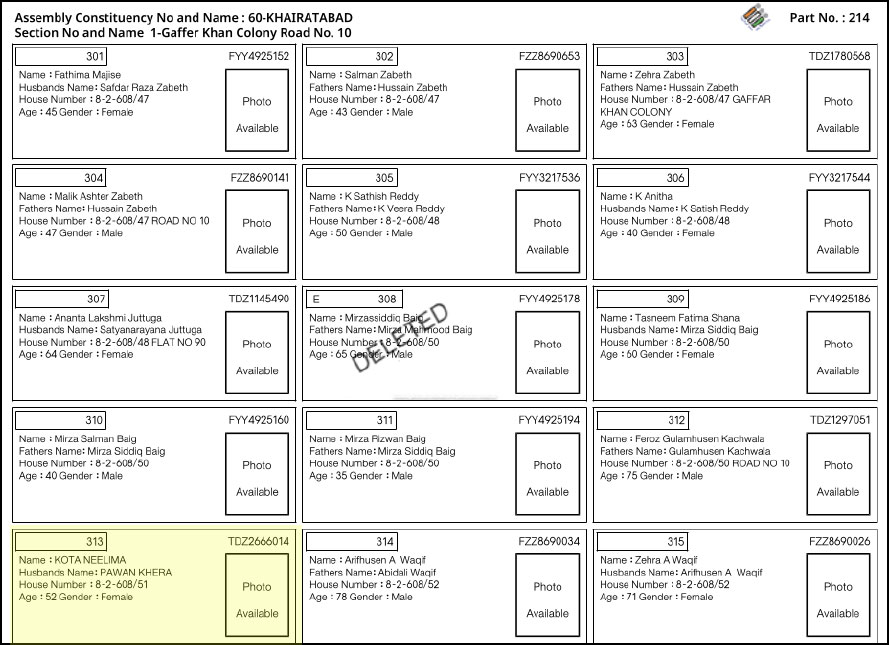 According to the details shared by Malviya, in her 2023 affidavit, which was cross-checked by OpIndia, Neelima was registered as a voter in Khairatabad with EPIC number TDZ2666014. The EPIC number, according to Malviya, was at two polling booths.