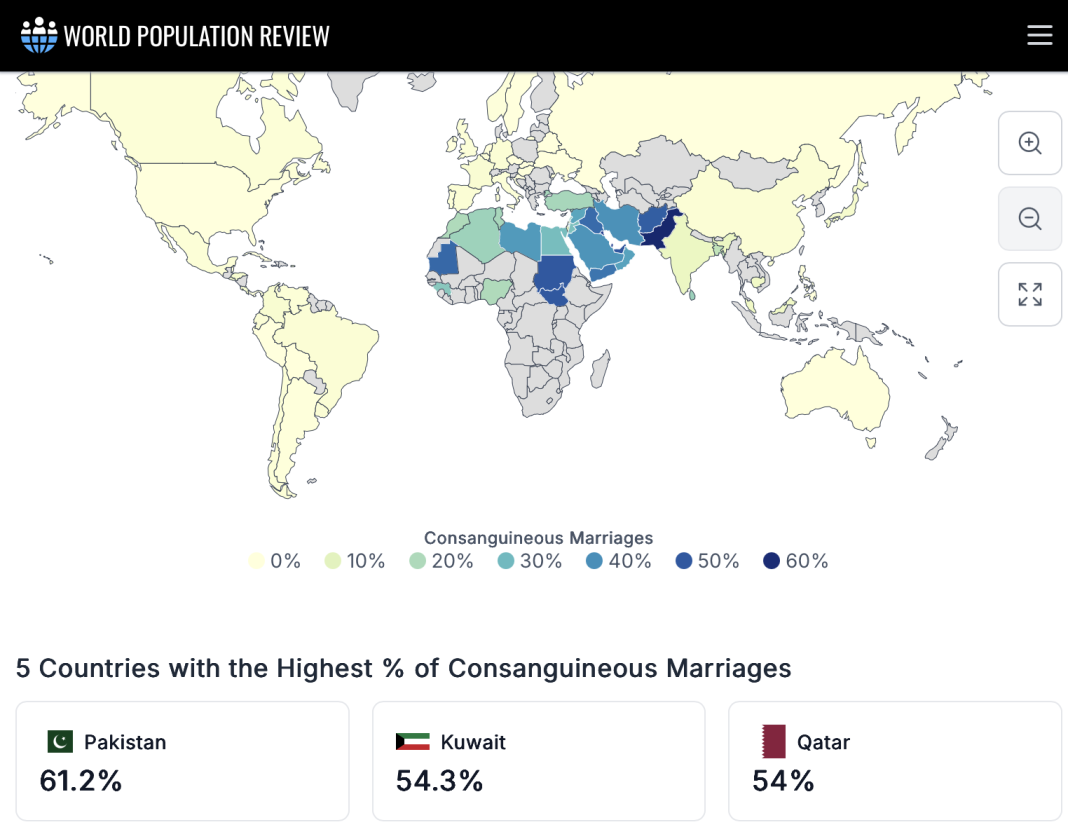 There is no denying that cousin marriages and such relationships are a significant part of Islamic society. Data from this year showed that Pakistan stands out as the epicentre of inbreeding at 61.2%, trailed by Kuwait, Qatar, the United Arab Emirates and Sudan. The prevalent practice within the Muslim community has continued to endure, despite the detrimental effects and the reservations or even taboos surrounding it.