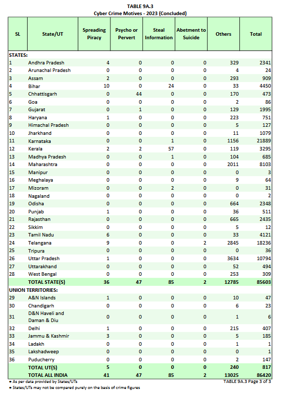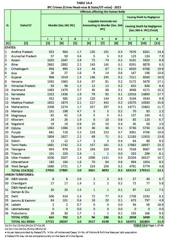 The NCRB’s 2023 report presents a mixed scenario of India’s law and order. While there was a decline in serious crimes such as murder and crimes against the state, there was a steep rise in cybercrimes, thefts, kidnappings, and crimes against children. The data suggests that although policing has improved in detection and registration, new categories of crime, particularly cyber fraud and economic offences, are emerging faster.