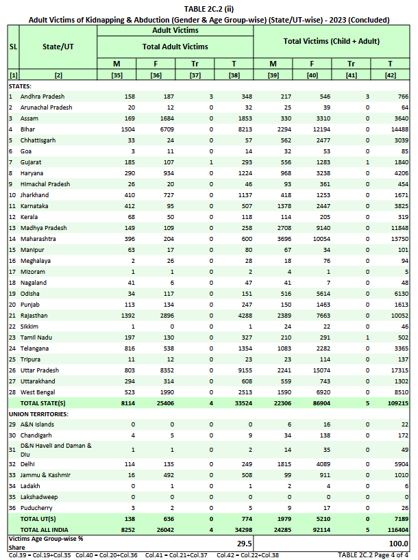 On the other hand, there was a 5.6% surge in kidnapping and abduction cases. In 2023, there were 1,13,564 cases reported. Out of these, 82,106 were children. Although most were recovered, 1,649 kidnapped individuals were found dead. The figures reflect both the extent and the risks of such crimes.