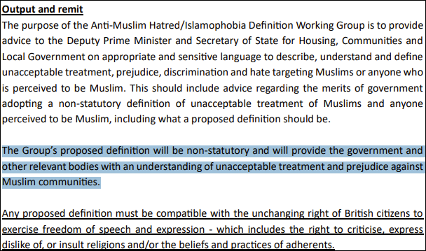 The Group states that the definition will be non-statutory, meaning that it will not be legally binding but will provide guidance to government and other bodies about what actions constitute Islamophobia or anti-Muslim hatred.