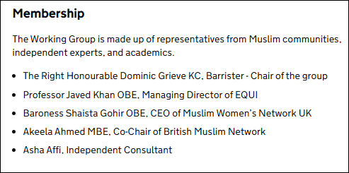 The Working Group formed in February 2025 submitted its draft in October. The Group is chaired by Dominic Grieve KC, Professor Javed Khan, Baroness Shaista Gohir, Akeela Ahmed, and Asha Affi.