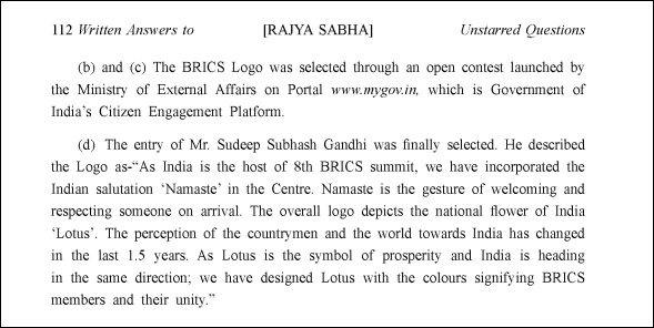 The original logo, that is the BRICS 2016 logo, was designed by Sudeep Subhash Gandhi. In a written reply in the Rajya Sabha back in December 2016, Minister of State for External Affairs V K Singh, informed that the logo in question was selected via an open contest. This contest was launched by the Ministry of External Affairs on the Government of India’s Citizen Engagement Platform, http://www.mygov.in.