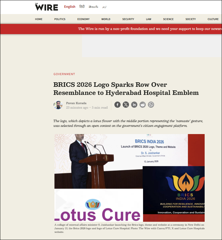 Meanwhile, leftist propaganda portal The Wire also jumped the bandwagon and published a report titled, “BRICS 2026 Logo Sparks Row Over Resemblance to Hyderabad Hospital Emblem”.