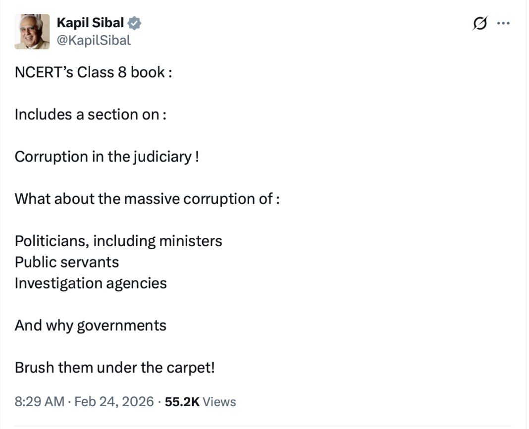 One group, like Kapil Sibal, suggests it’s unfair to highlight corruption in the judiciary without addressing similar issues in other government branches. The other group sees the inclusion of the section in the NCERT textbook as some sort of goal-scoring by the government against the judiciary.