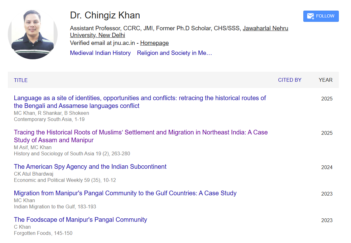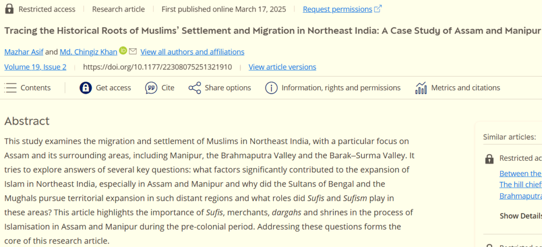 Coincidentally, the paper was titled ‘Tracing the Historical Roots of Muslims Settlement and Migration in Northeast India: A Case Study of Assam and Manipur.