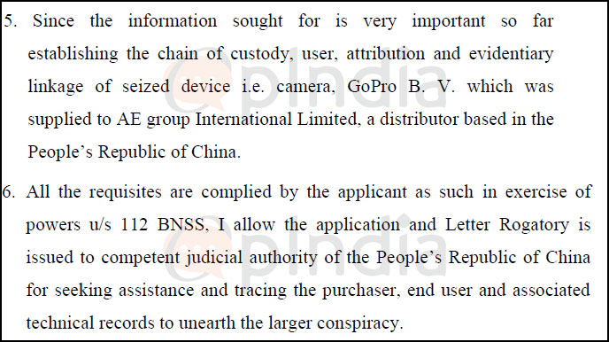 Allowing the application under Section 112 of the BNSS, Special Judge Prem Sagar held that the information sought was critical to the case. The court observed, “Since the information sought for is very important so far establishing the chain of custody, user, attribution and evidentiary linkage of seized device i.e. camera, GoPro BV, which was supplied to AE Group International Limited, a distributor based in the People’s Republic of China.”