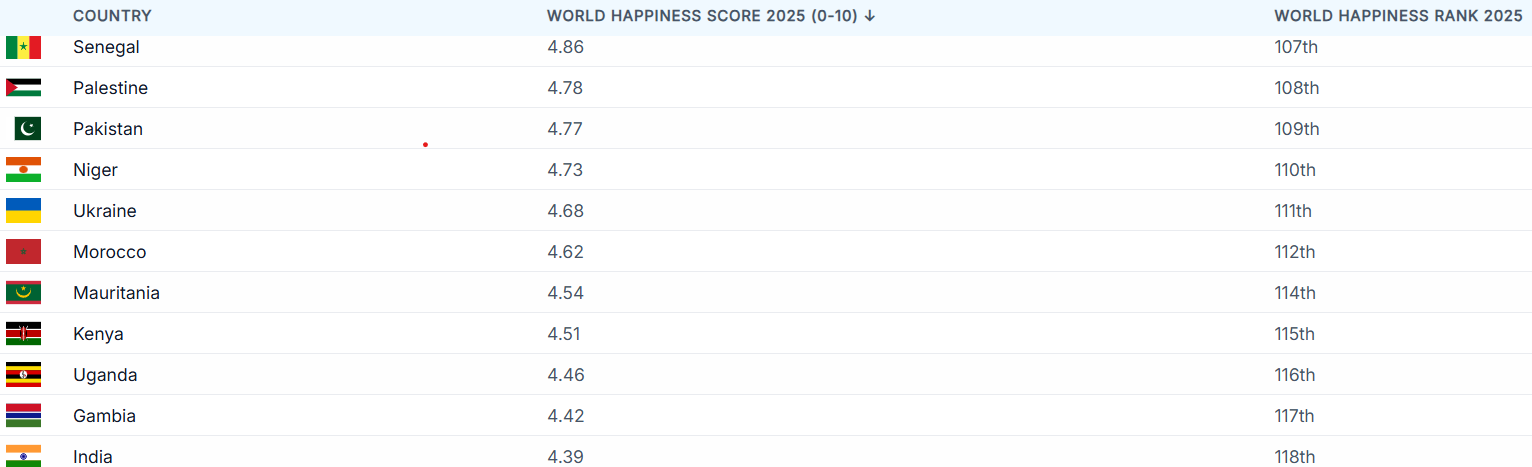 Notably, the Islamic Republic which has been grappling with a debilitating economy, characterised by long queues for depleting flour reserves that have led to violence, fatalities and injuries, a severe suppression of its alleged democracy with a former prime minister languishing in prison, relentless terror attacks from the Tehreek-e-Taliban Pakistan and Baloch rebels along with relentless border altercations with neighbours, is deemed happier than the fastest growing economy in the world. Their situation is increasingly dire as a result of the Middle East tensions.