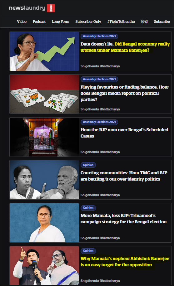 Bhattacharya also has a track record of writing pro-TMC propaganda pieces, particularly during elections.