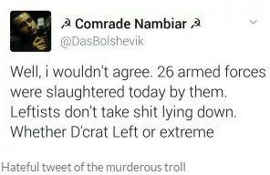 In 2017, Aditya Menon had supported a murderous social media troll “Comrade Nambiar” who celebrated the death of 26 CRPF men who were killed by Maoists.