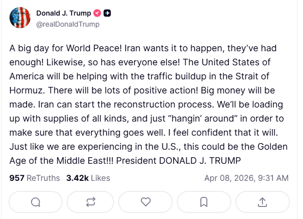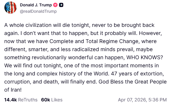 Notably, the announcement of the ceasefire itself came barely an hour after Trump’s deadline to “obliterate” Iran expired. In a Truth Social post, he threatened to “wipe out” a whole civilisation. He wrote, “A whole civilization will die tonight, never to be brought back again. I don’t want that to happen, but it probably will. However, now that we have Complete and Total Regime Change, where different, smarter, and less radicalized minds prevail, maybe something revolutionarily wonderful can happen, WHO KNOWS?”