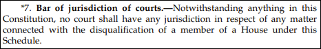 Interestingly, the Tenth Schedule also bars the jurisdiction of the court regarding the disqualification of a member of the House in this context. The law states, “Notwithstanding anything in this Constitution, no court shall have any jurisdiction in respect of any matter