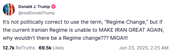 Following the announcement of strikes by the US on Iran’s nuclear facilities, President Trump suggested regime change in Iran. In a post on Truth Social, he said, “It’s not politically correct to use the term, ‘Regime Change,’ but if the current Iranian Regime is unable to MAKE IRAN GREAT AGAIN, why wouldn’t there be a Regime change??? MIGA!!!” The remark was a clear sign that the US desired the end of Iran’s ruling system. This was not a statement that could be ignored. It implied US involvement in Iran had a goal beyond destroying its nuclear program.