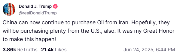 He penned, “By bombing Iran, Trump has paradoxically moved closer to his dream of winning the Nobel Peace Prize. This not-for-peace prize has, after all, gone to several warmongers.”