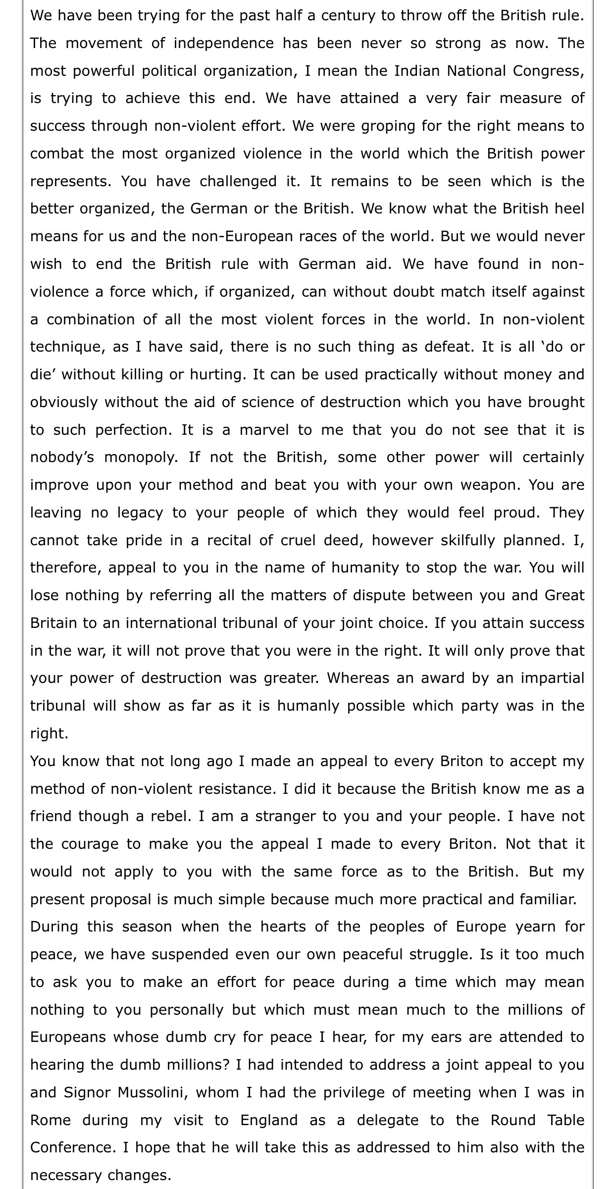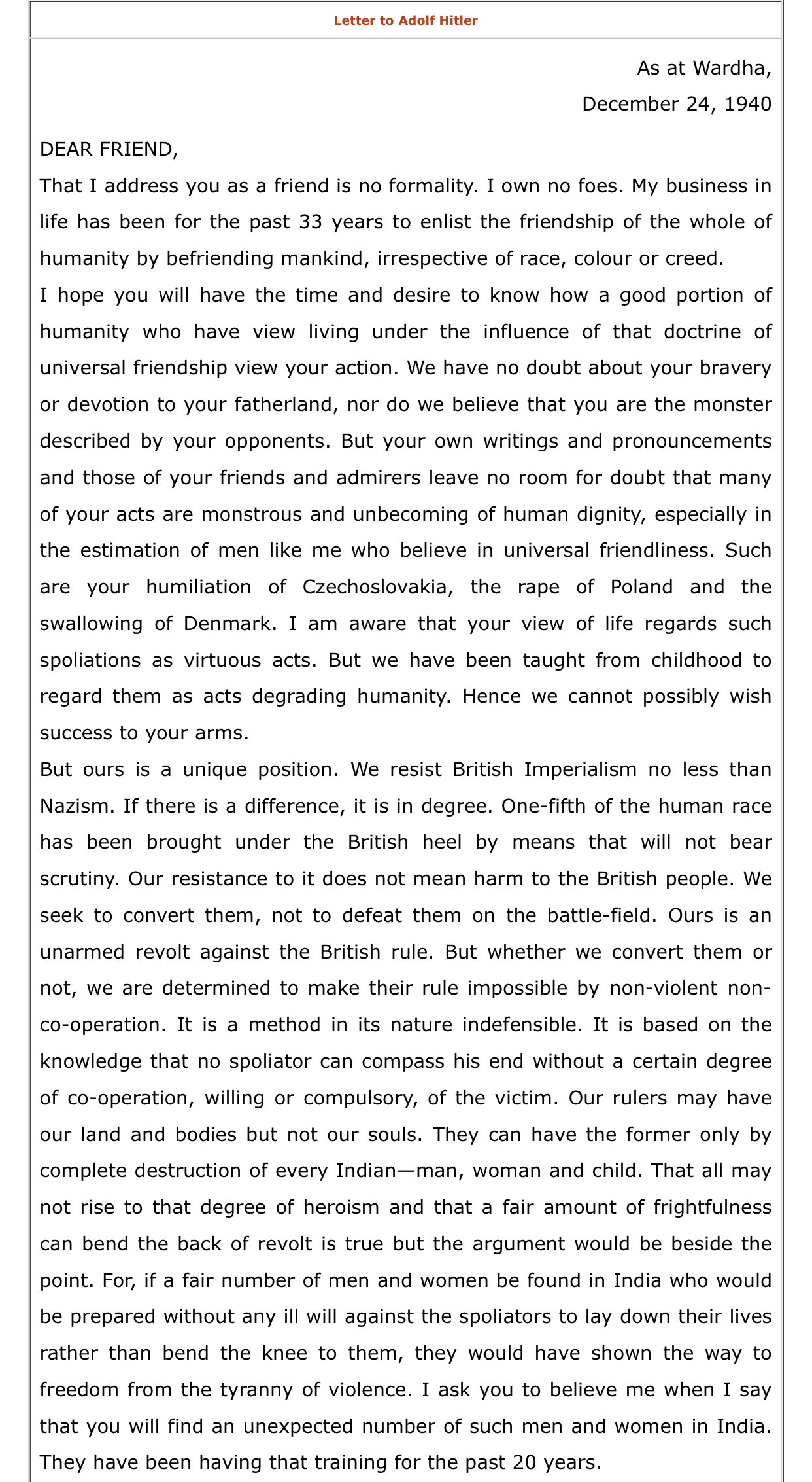 Part 1 of the second letter written to Adolf Hitler by MK GandhiPart 2 of the second letter written to Adolf Hitler by MK Gandhi
