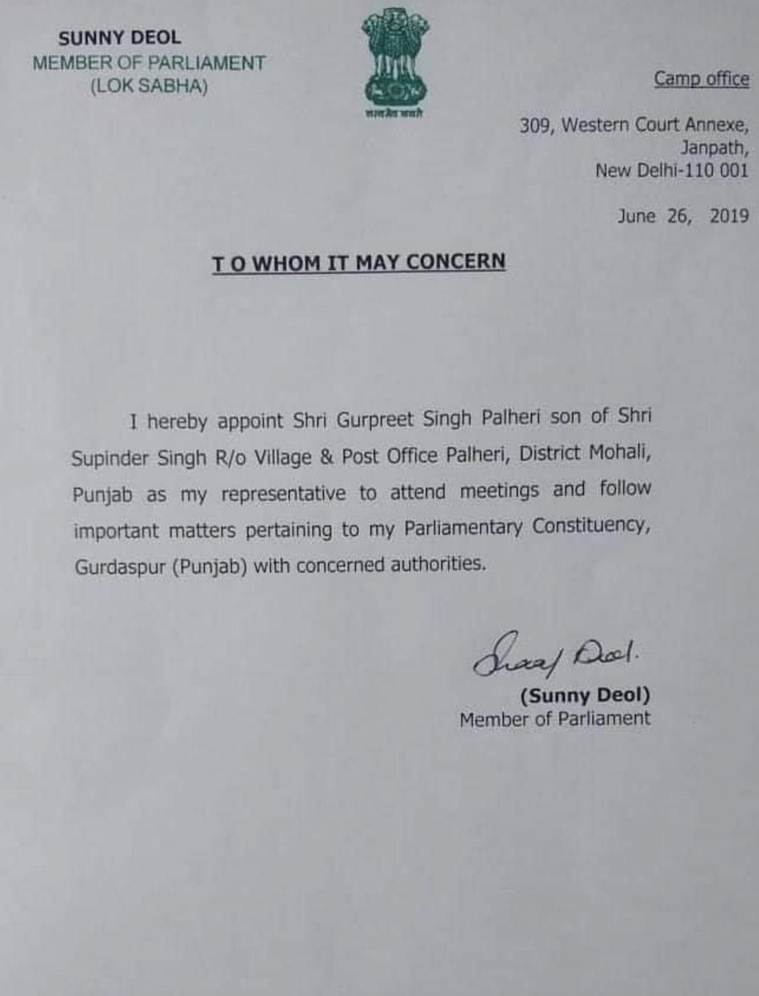 Calling the controversy unfortunate, Deol explained that he appointed his Personal Assitant to ensure smooth flow of work when he is not present in his constituency. The intention of the same is to ensure that no work is disrupted or delayed when he is not in the constituency, and to ensure that the work flows smoothly and he is updated about the same regularly when is out of Gurdaspur to attend parliament or for any other work. He added that as an elected representative he was genuinely committed to the cause of Gurdaspur.