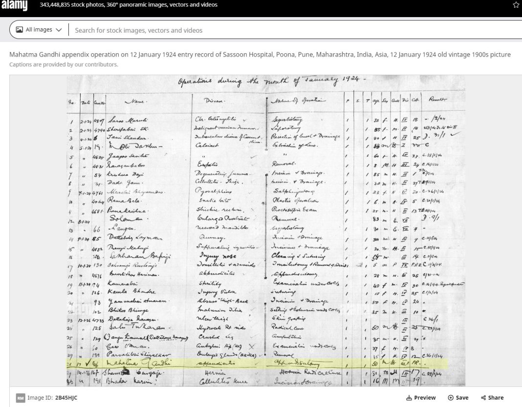 There is a medical record available where Gandhi’s name was mentioned for the appendectomy. It can be checked here.
