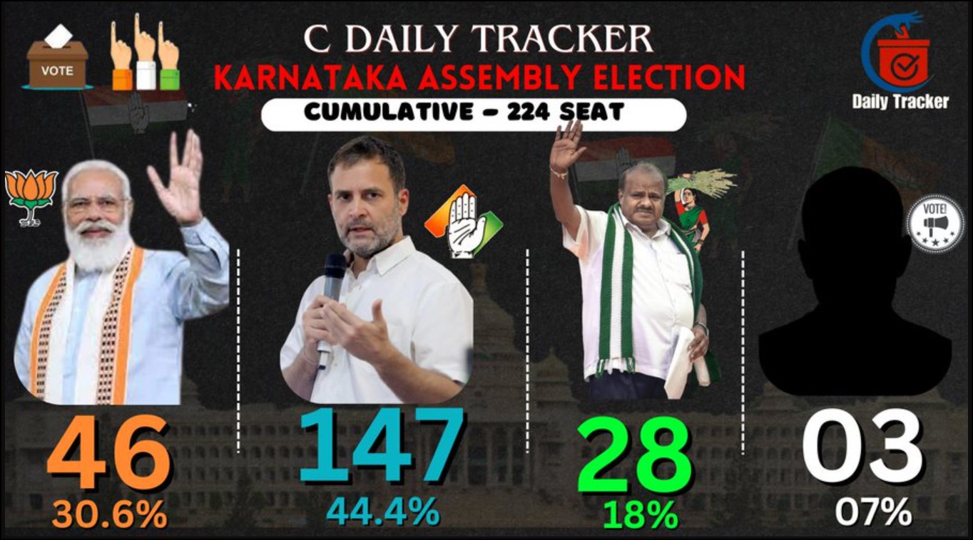 The C Daily Tracker released its survey results on April 30, predicting Congress a clear edge in the upcoming polls in Karnataka.