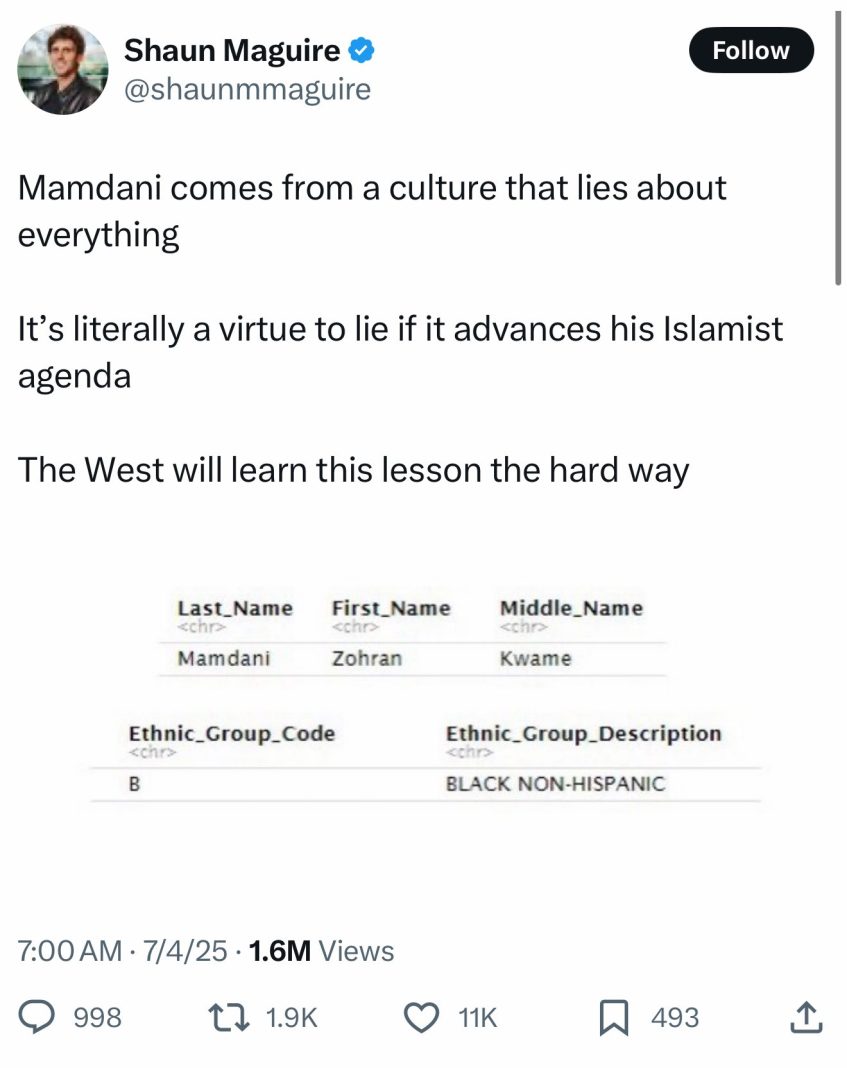 A Jewish woman married a Muslim man, so naturally Zohran Mamdani commented “Another loss for Democratic Majority for Israel.”