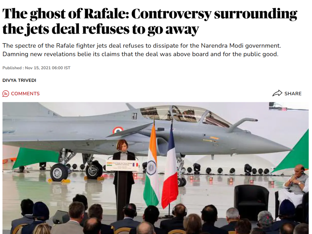 The opposition parties were joined by leftist propaganda outlets like The Wire and The Hindu in mounting a sustained campaign alleging corruption, cronyism, inflated costs of the deal and whatnot.