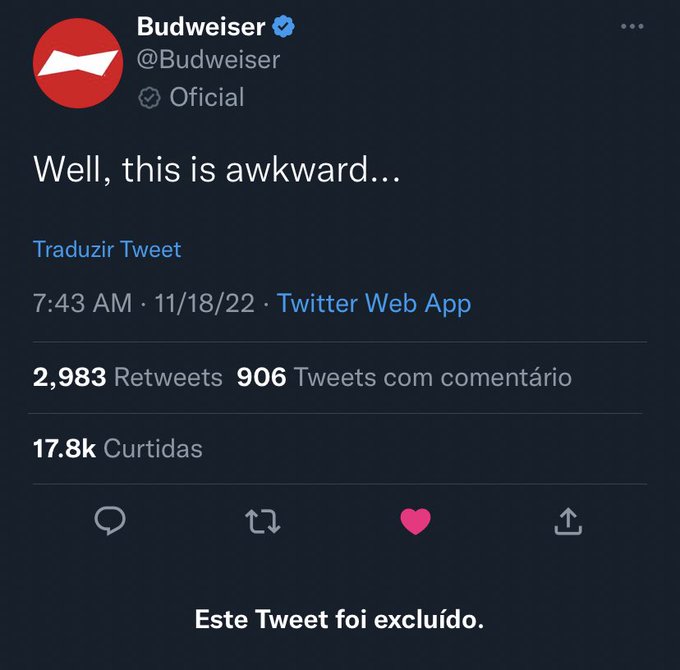 In a now-deleted tweet, Budweiser’s official Twitter account responded to the beer ban and wrote, “Well this is awkward…”