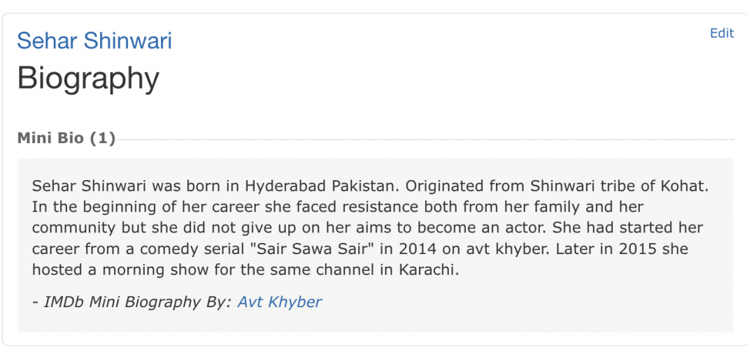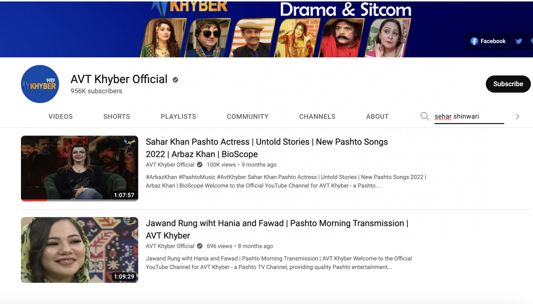 However, on Avt Khyber, there is no match found for Sehar Shinwari.