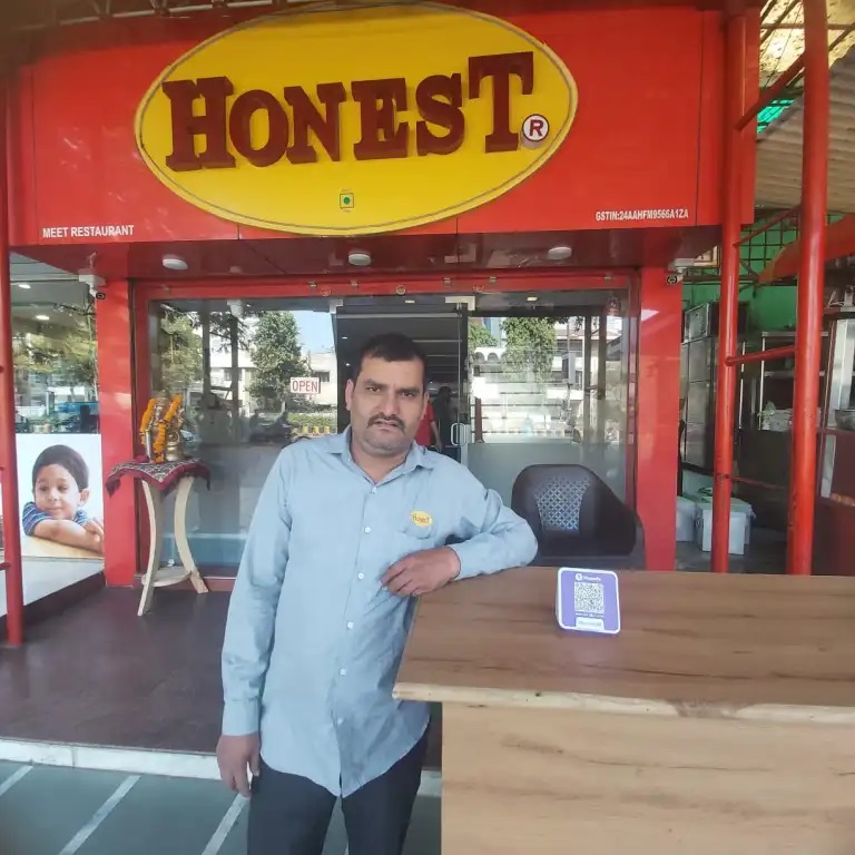 Ram Sinh Zala asked OpIndia to give him just 10 minutes and said, “I’m just going to an Honest restaurant outlet nearby and checking for your to know what is the truth.” After some time, Ramsinh Zala reached the outlet of the Honest Restaurant on Kalavad Road in Rajkot and from there made a video call to show us that digital and UPI payment facilities are available there.