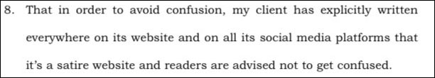 The notice further pointed out that the recipients of the notice, that is, journalist Kudrati, is well aware of what satire is. The notice read, “In fact, you Noticees are very well aware of the difference between real and satire news and that you Noticee No. 3, In fact, has been retweeting the tweets from parody account yourself which shows that the act done by you against my client is a hit-job in order to gain some views for Noticee no. 1 while trying to destroy the reputation of my client with malafide intention.”