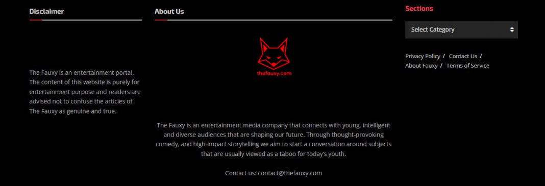 The Fauxy clearly advice its readers not to “confuse the articles of The Fauxy as genuine and true”. Source: TheFauxy.com