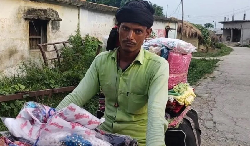 One Mumtaz Ali was seen selling clothes on a bike in the same neighbourhood as we were reporting. Mumtaz had a lot of items stashed on his bike. He identified himself as a native of the Uttar Pradesh district of Sitapur, which is 200 kilometres away from this particular village. He stated that he had rented a room in the adjacent bazaar of Tulsipur. Mumtaz estimated the total value of the products kept on his bike to be roughly 25,000 rupees. He explained how he transported bulk products from Sitapur and sold them across the border.