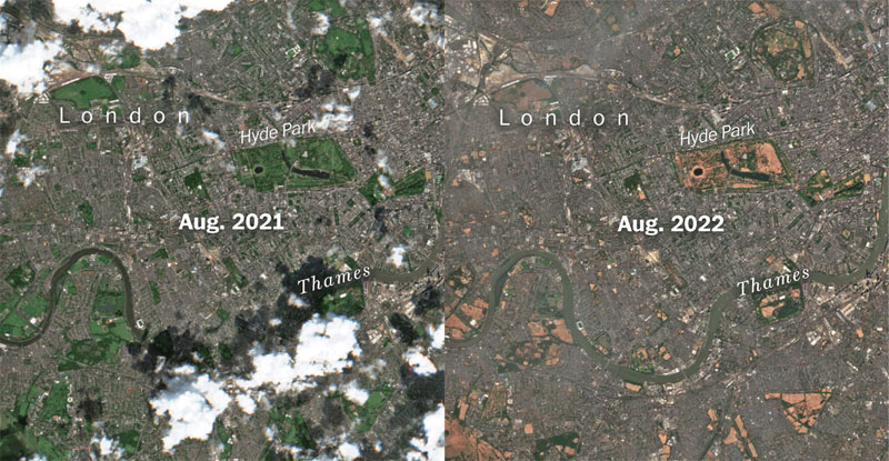 Sattelite images show how draught has gripped London. Source: Washington Post