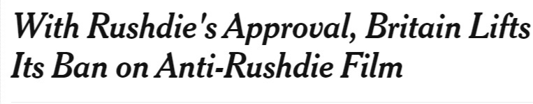 “The classification board denied ‘International Gorillay’ a certificate that would allow people over 18 to rent it for home viewing because, it said, the film constituted criminal libel against Mr. Rushdie,” the report underlined.