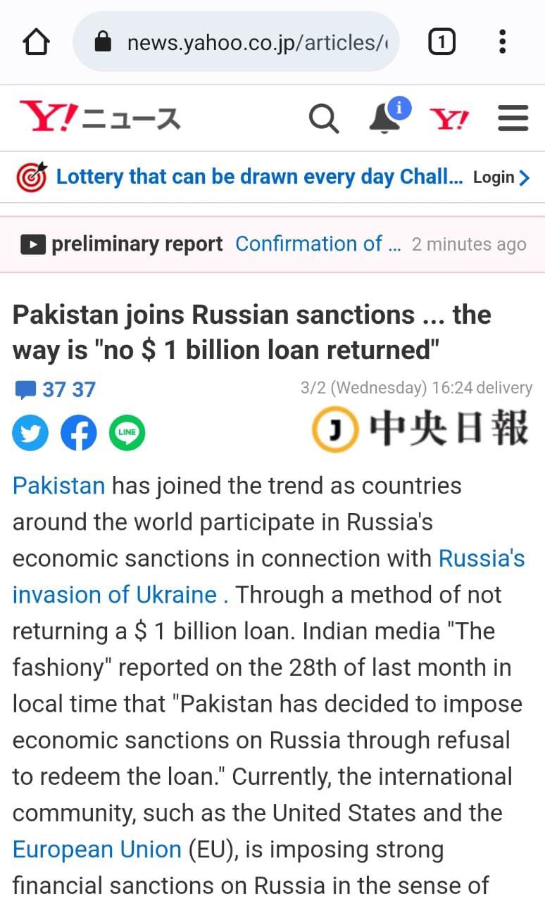 Another Japanese website also published a satirical article as actual news, stating that Pakistan was going to inflict punishment on Russia by defaulting on its loan payments.
