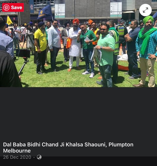 Plumpton Gurudwara “dal” at the Australia-India 2021 Boxing Day cricket match protesting about Indian farm laws. A Khalistan flag can be observed in the background (source: AHM)