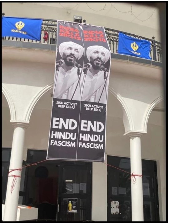 On 20th February 2022, a Sikh Gurudwara in Australia showcased an Anti-India/Hindu poster blatantly in between two so-called Khalistan flags. The poster had hate-filled slogans like ‘End Hindu Fascism’ and ‘India kills Sikhs’ printed on it. It also bore the image of the deceased Punjabi actor Deep Sidhu, one of the accused in the 2021 Republic Day riots. The poster was found hanging at the entrance of the Craigieburn Sikh Gurudwara in Australia.