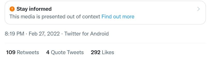 However, Twitter flagged the video posted by All India Parisangh as “Stay infiomed! This media is presented out of context.” This flag meant that various videos and images circulating on social media were taken in previous years and are not linked with the current situation in Ukraine.