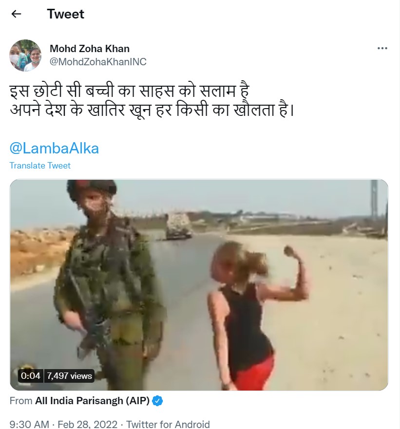 The video was also shared on Twitter by some Congress Party leaders. It was posted by Mohd Zoha Khan, whose Twitter profile says he is a Congress leader. He shared the video writing, “Salute to the courage of this little girl Everyone’s blood boils for the sake of his country. @LambaAlka”