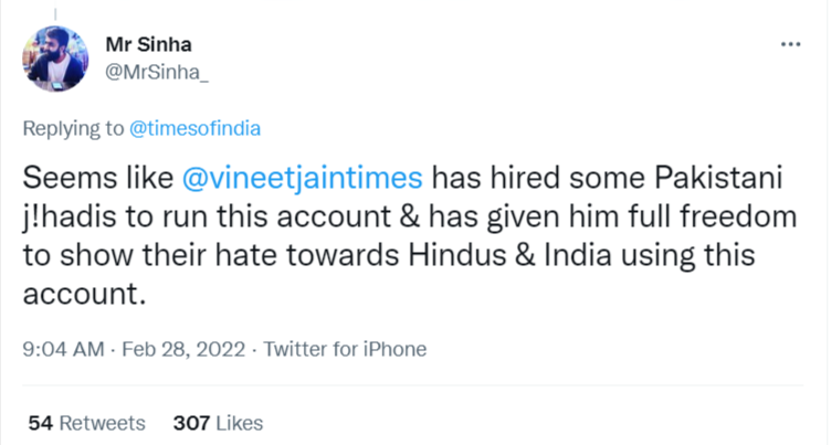 The Times of India was slammed by netizens for its insensitive reporting on the demise of the Indian scientist. Popular Twitter user, Mr Sinha, wrote, “Seems like Vineet Jain has hired some Pakistani jihadis to run this account & has given him full freedom to show their hate towards Hindus & India using this account.”