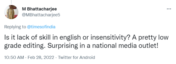 Another user slammed The Times of India for its insensitive reporting and low-grade editing.