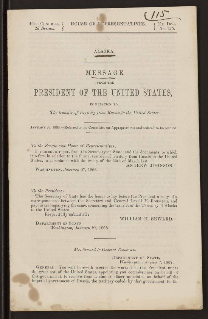 After the end of the American Civil War, US Secretary of State William Seward negotiated the purchase of Alaska with Russian minister Eduard de Stoeckl. Steward and the Russian Minister to the United States reached an arrangement in which the US would pay Russia $7.2 million for Alaska.